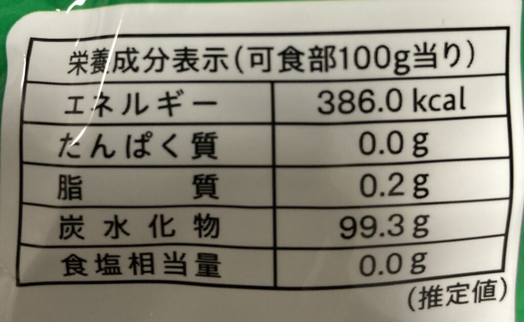 となっており、基本的には砂糖と水飴が主成分の一般的なキャンディタイプです。