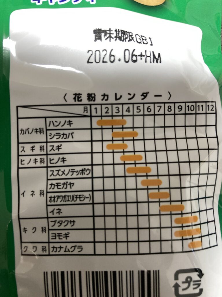 緑をベースにしたパッケージには、大きく「鼻・のどすっきり」「花粉対策」と書かれており、かなり目立ちます。