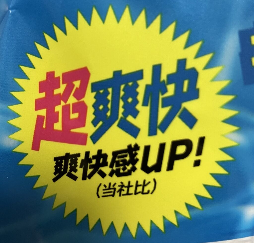 左下には 「超爽快/爽快感UP!(当社比)」 の黄色いアイキャッチがあり、視覚的にも刺激の強さが伝わります。