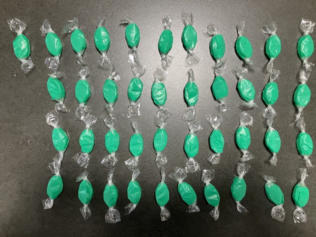 中の飴は1粒ずつ個包装されており、両端をねじるタイプの包装。
