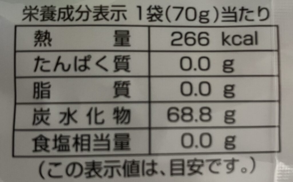 ◆栄養成分表示(1袋70gあたり)