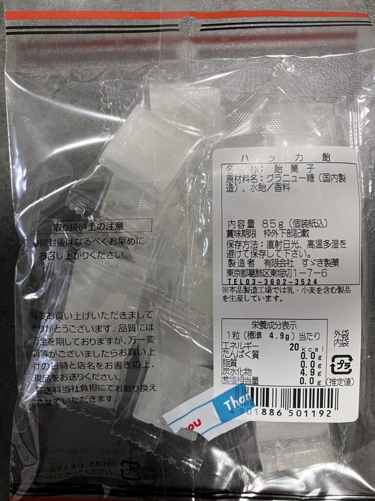 今回は有限会社すヾき製菓の「ハッカ飴」をレビューします。