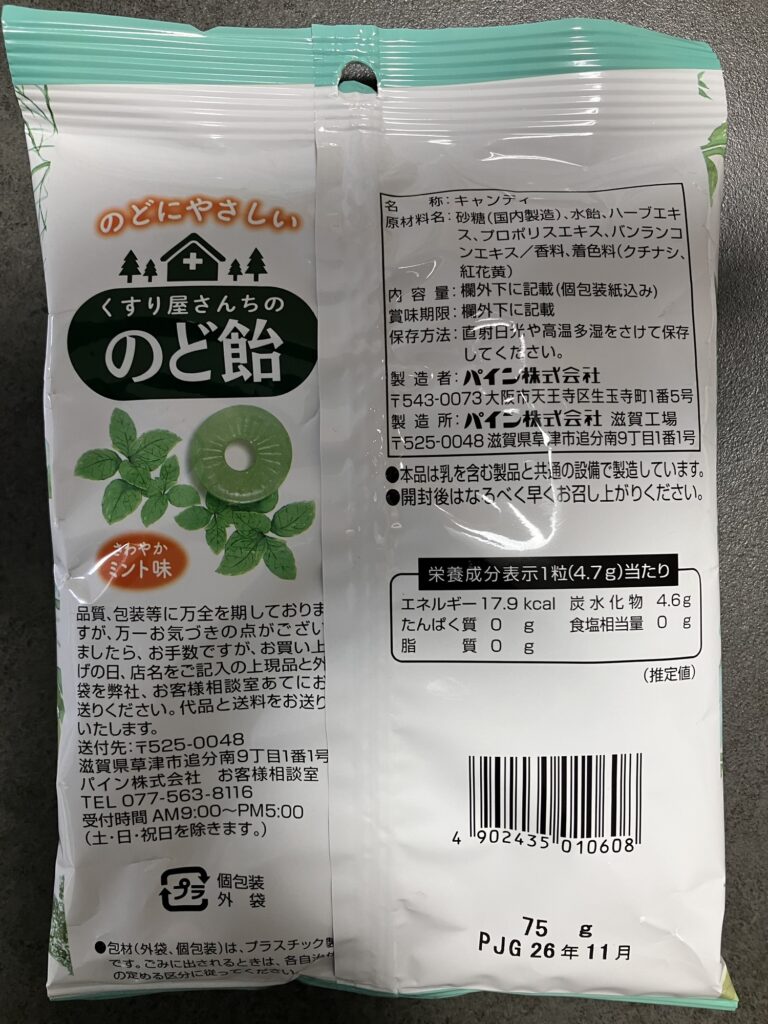 商品名:くすり屋さんちののど飴